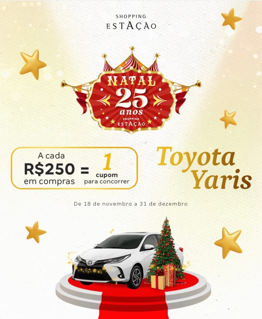 Campanha de Natal do Shopping Estação vai até o dia 31/12 Ainda dá tempo de começar o ano com um carro 0 km na garagem. A cada R$250 em compras, os clientes ganham um cupom para concorrer a um Toyota Yaris novo. Para quem ainda não comprou o look do Réveillon ou não fez as trocas de presentes de Natal, é o momento ideal para ir até o Shopping Estação e concorrer ao prêmio da promoção, que vai até o dia 31 de dezembro. Neste ano, as trocas das notas fiscais serão feitas exclusivamente pelo aplicativo do shopping, que está disponível para download em Android e iOS ou diretamente neste link. Sobre o Shopping Estação O Shopping Estação é ponto de encontro e referência em entretenimento e gastronomia na cidade, com um mix de lojas e serviços completo, além de reunir parte da história de Curitiba no Museu Ferroviário, único museu dentro de um shopping no Brasil. Inaugurado em 14 de novembro de 1997, há 25 anos o Shopping Estação tem participação ativa na vida dos curitibanos e de milhares de turistas que passam pela capital paranaense. Em 2007 foi adquirido pelo grupo BRMALLS, maior empresa de shopping centers do país, passando por um processo constante de qualificação. Serviço Campanha Natal - Aplicativo https://linktr.ee/nataldoestacao Shopping Estação Av. Sete de Setembro, 2.775, Rebouças Curitiba (PR) (41) 3094-5300 https://www.instagram.com/shopping_estacao/www.shoppingestacao.com.br