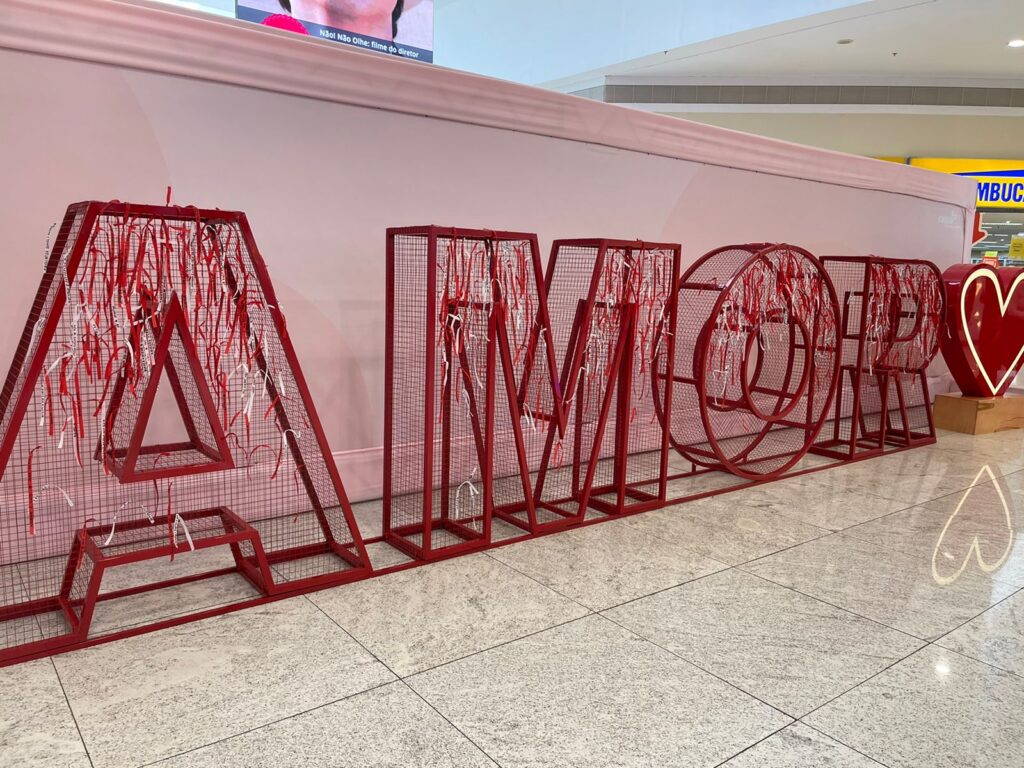 Amarrar fitinhas em um grande aramado com a palavra amor é a proposta do Catuaí Shopping para tornar o Dia dos Namorados inesquecível