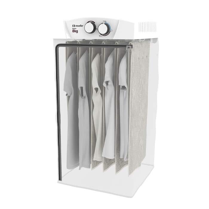 Quando as roupas não secam totalmente, é comum o odor desagradável e característico. Para que elas sequem mais rápido e de maneira uniforme, mesmo em dias nublados, é importante que seja retirado, o máximo possível, do excesso de água antes de colocar no varal. Um grande auxílio nesse momento é a centrífuga, eletrodoméstico que recebe as roupas lavadas, ainda molhadas e que, por conta do seu sistema de alta rotação, drena a água para que a roupa fique praticamente seca. Ao agilizar o processo de secagem, o resultado são peças levemente úmidas e que secam rapidamente, e por completo, quando estendidas no varal. Uma das vantagens é o motor potente e a diminuição do tempo de secagem no varal. Além de ser rápida, a centrífuga ainda economiza energia elétrica e possui uma grande variedade de tamanhos que servem todos os tipos de casas, sendo que muitos são portáteis e fáceis de serem carregados por conta do acabamento leve. Com a eliminação da água por um bico de saída no próprio produto e o atributo da sustentabilidade, que viabiliza o encaixe em um recipiente para armazenar a água para usos futuros, a centrífuga também dispensa o quebra-quebra ou instalação de canos para funcionar. Muito simples! Secando a roupa até em dias sem sol Uma dica para quem deseja secar as roupas de maneira mais simples é investir em uma secadora que, ao contrário do que muitos pensam, apresenta um baixo consumo de energia elétrica. O eletrodoméstico é um facilitador de rotina, pois diminui o tempo de secagem e permite que você não acumule roupas sujas ou molhadas no cesto. Pensando em oferecer soluções que facilitam a rotina dos moradores com um excelente custo-benefício, a Mueller conta com dois modelos: Secadora de Parede Mueller Solaris 8Kg