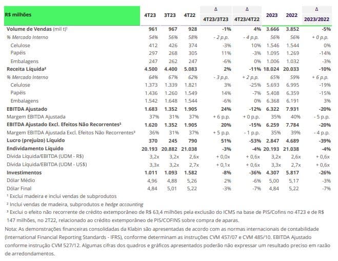 Klabin registra EBITDA Ajustado de R$ 6,259 bilhões em 2023¹