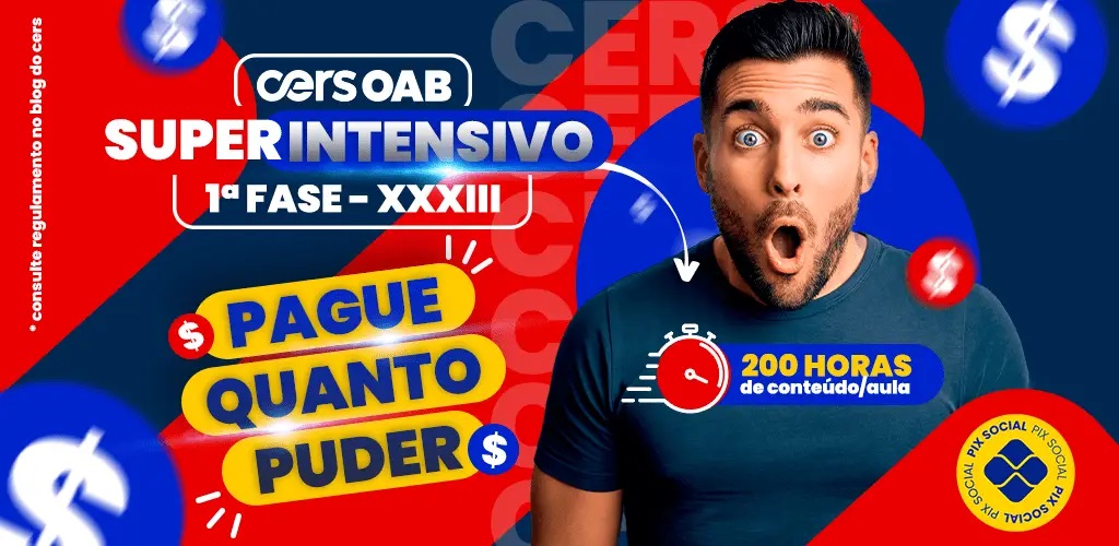 O Exame de Ordem – conhecido também como “a Prova da OAB” – é o passo final para os estudantes de Direito poderem exercer a profissão. Logo, o preparo é árduo: meses de estudo que exigem bons professores, que normalmente são oferecidos pelos cursos preparatórios. No entanto, muitos não têm condições de arcar com os custos. Pensando nisso, o Grupo CERS criou o “Pix Social”: uma modalidade de curso solidário da 1ª fase da OAB, para que os alunos paguem o quanto puderem para estudar. Não há necessidade de comprovação.