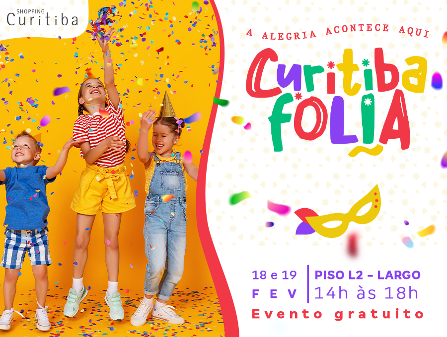 Show de bandas, desfile de fantasias, camarim de maquiagem e brincadeiras fazem parte da programação Neste final de semana, sábado (18) e domingo (19), o Shopping Curitiba preparou uma festa super animada de Carnaval. O Curitiba Folia terá uma programação gratuita, com shows de bandas, desfile de fantasia, camarim de maquiagem, brincadeiras e muita diversão. Será uma tarde inteira, das 14h às 18h nos dois dias, para as famílias curtirem muito. No sábado, a banda Os Viajantes irá animar o público, com marchinhas e músicas típicas da festa mais animada do ano. No domingo, é a vez da banda Garibaldinhos e Sacis, que já faz o maior sucesso nos bloquinhos da capital. O Curitiba Folia terá também desfile de fantasias, camarim de maquiagem e muitas brincadeiras. Além disso, haverá distribuição de kits folia. Os kits são limitados e serão entregues mediante inscrição prévia no dia, na hora da festa. A curadoria e a produção do evento são do Muralzinho de Ideias. Confira a programação completa: 14h às 14h30 - som mecânico e distribuição de kits folia (kits limitados e entregues mediante inscrição prévia no dia, na hora da festa) 14h30 às 15h30 - banda Os Viajantes (18/2) e Garibaldinhos e Sacis (19/2). 15h30 às 16h30 - desfile de fantasias e brincadeiras . 16h30 às 17h30 - banda Os Viajantes (18/2) e Garibaldinhos e Sacis (19/2). 17h30 às 18h - som mecânico. *camarim de pintura - das 14h às 18h nos dois dias. Curitiba Folia - Shopping Curitiba Dias 18 e 19 de fevereiro Das 14h às 18h Programação gratuita Rua Brigadeiro Franco, 2.300, Centro, Curitiba (PR) (41) 3026-1000 www.shoppingcuritiba.com.br https://www.instagram.com/shoppingcuritiba/ www.facebook.com/ShoppingCuritiba