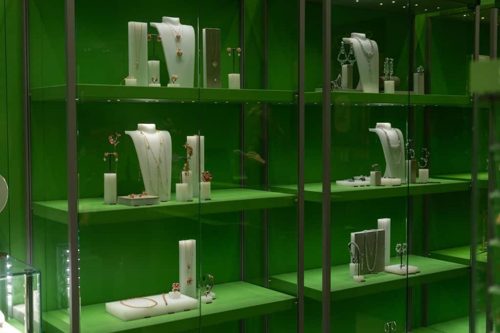 A cor verde intensa aplicada em todos os detalhes - nas paredes, prateleiras e mobiliário - é o grande destaque da nova loja, localizada no Piso L1, e convida o público a adentrar no universo da Swarovski. A cor escolhida representa a calma e a natureza.