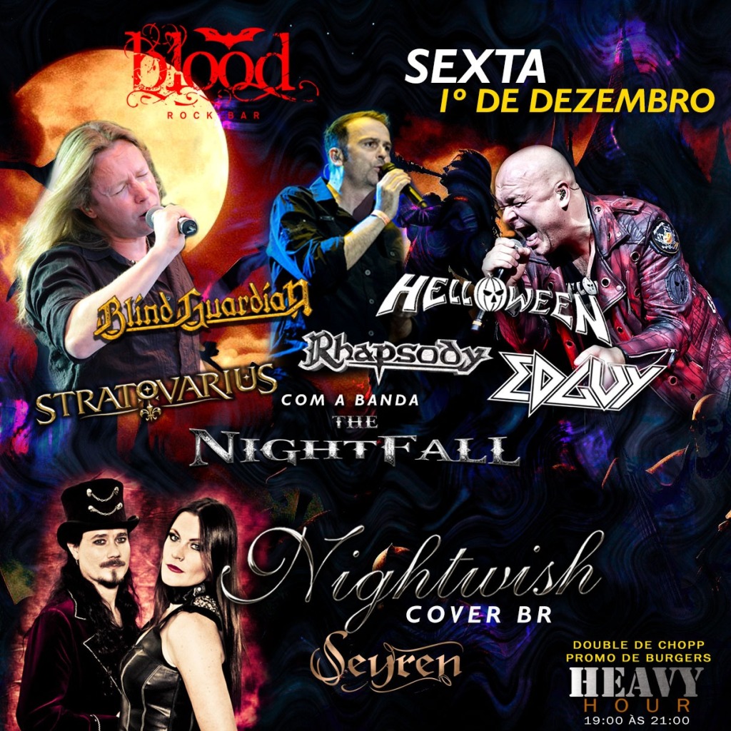 O Blood Rock Bar abre suas portas na sexta-feira (01 de dezembro), para um tributo especial ao Nightwish - uma das maiores bandas do mundo, que mescla o peso do Metal com vocais líricos - com a Seyren, que conta com Vanessa Rafaelly como vocalista. A noite também terá a The Nightfall, tocando sucessos de Helloween, Blind Guardian, Edguy, Rhapsody e Stratovarius, gigantes do metal sinfônico e melódico.